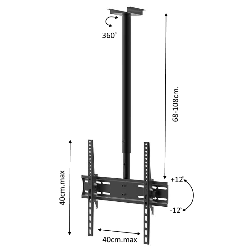 Размер за максимално захващане на монтажните винтове от капака на телевизора до 40x40cm.