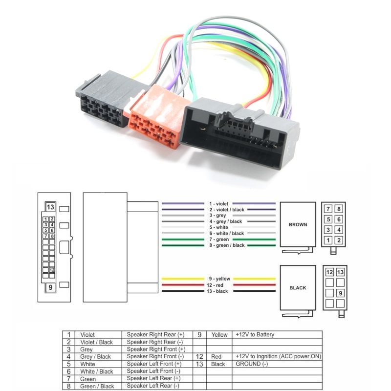 Изгледа на схемата от изображението е от страната на кабелите на конекторите!
