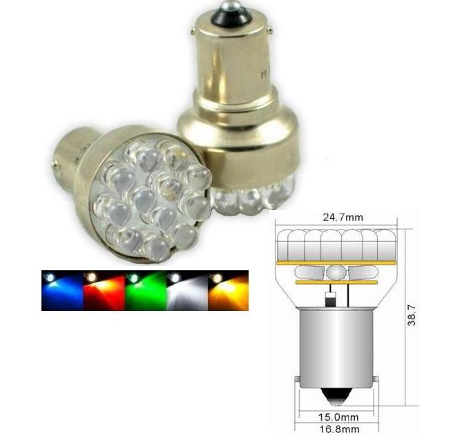 Светодиодна крушка за автомобил с 12 жълти светодиода. Заместител на R10W/Ba15S/P21W/1156. Подходяща за мигач. 12V