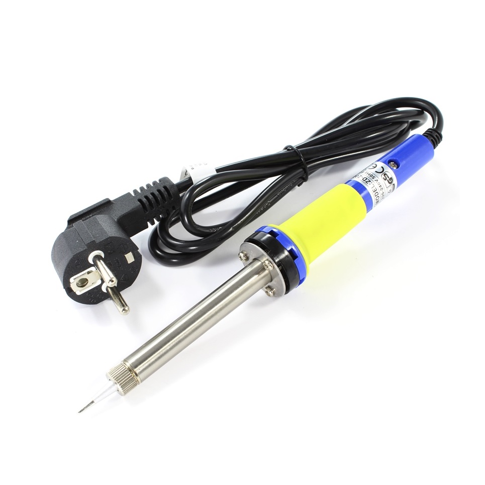 Поялник със закален накрайник рационало прикрепен с гайка. Нагревател с дистанционна втулка от бакелит към дръжката. Захранване с трижилен CE кабел 220V AC.
