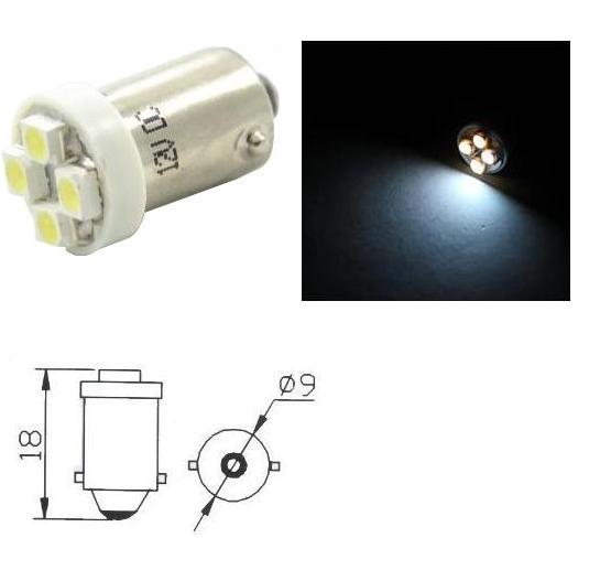 Светодиодна крушка за автомобил . Заместител на Ba9s/ T4W. Подходяща за габаритни светлини. 12V. Цвят бял