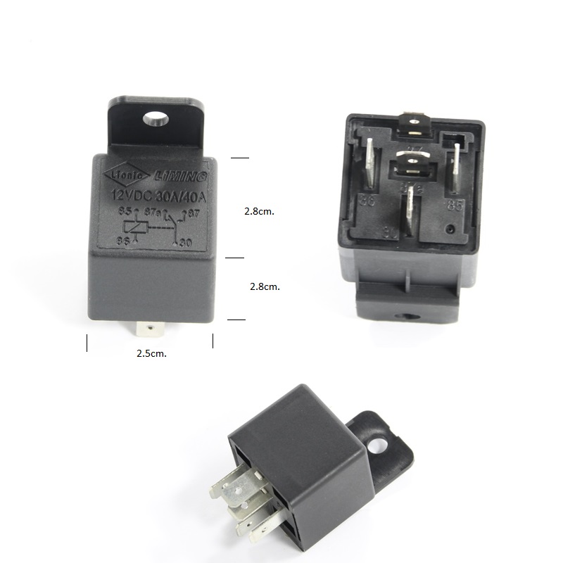 Реле с пет клеми,нормално отворен и затворент контакт. Управляваща бобина 12V DC. Товар на силовите контакти при 14V DC =40A MAX