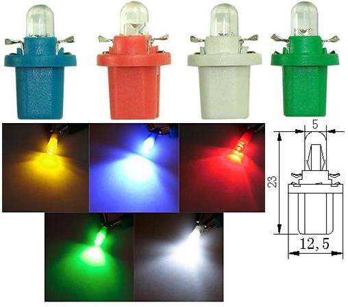 Светодиодна лампа 12V. Размер B8.5D. Бяла светлина. За табло . Опаковка 10бр.