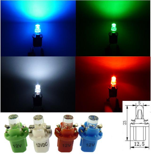 Светодиодна лампа 12V. Размер B8.5D. Червена дифузна светлина. За табло . Опаковка 10бр.