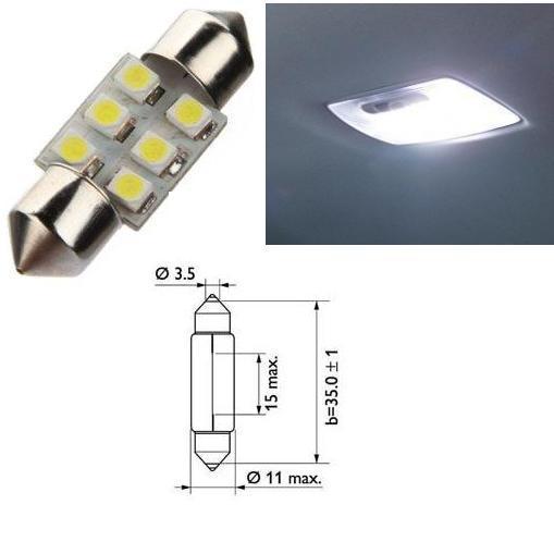 Светодиодна крушка за автомобил с 6 ярко-светещи бели светодиода. Заместител на C5W/C10W/SV8.5/36mm. За плафони или номера. 12V