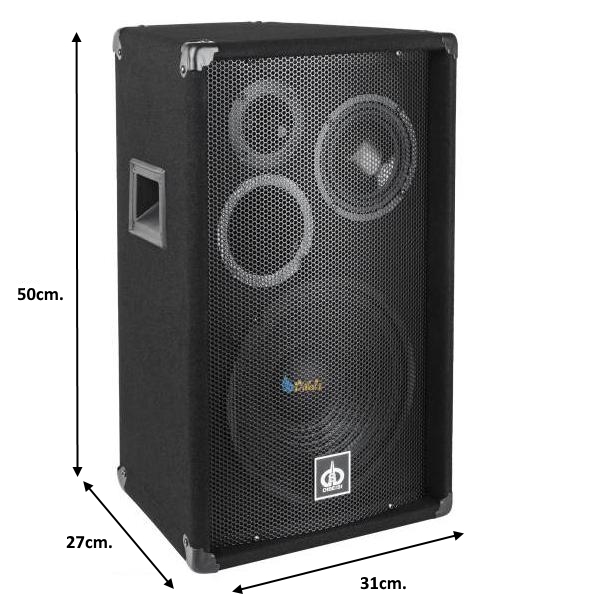 Дървена трилентова тонколона . Размер 50 x 31 x 27cm. Бас 8"-20cm. Среда 4"-10cm. Високочестотен 3.4"-8.6cm. Импеданс 8ohm. Честота 60-20 000Hz. Мощност 100W MAX