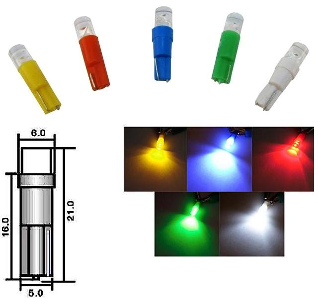 Светодиодна лампа за автомобил 12V разпръсната бяла светлина. Заместител на T5/R5/W1,2W/W2W/W2,3W. За табло и други.
