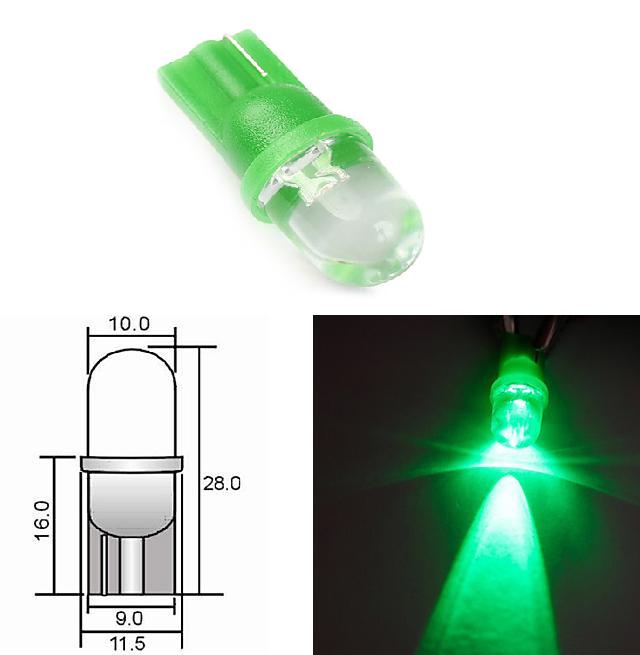 Светодиодна лампа 12V зелена . Заместител на W5W/T10/ R10/W2.1x9.5d. За габарит и други.