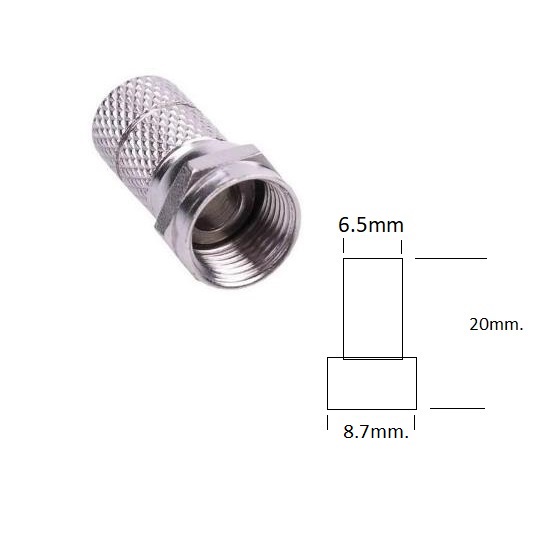 Качествен ф-конектор за 6.5mm. кабел. Дължина 20mm. Опаковка 100бр.
