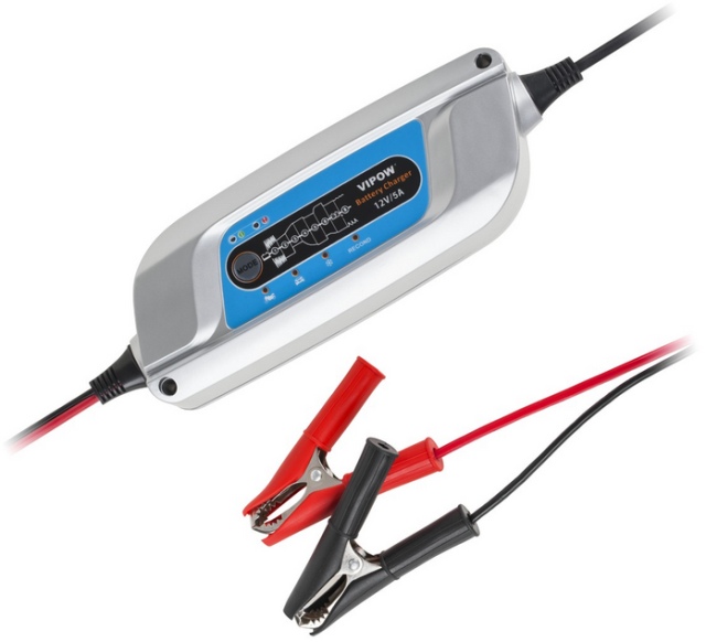 Автоматично зарядно за оловни и киселинни акумулатори. Зарежда 12V от 6Ah до 120Ah. Ток на заряд 5A MAX. Входно напрежение 220-240V AC. 8-етапа на автоматичен заряд.