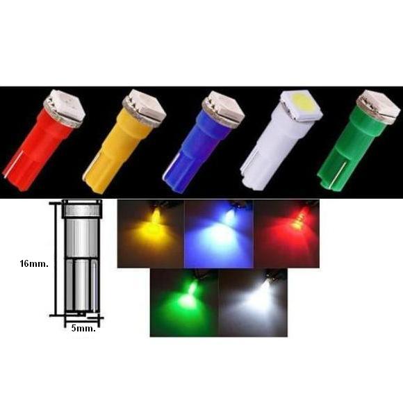 Светодиодна крушка за автомобил 12V синя. Заместител на T5/R5/W1,2W/W2W/W2,3W. За табло и други. 5x16mm.