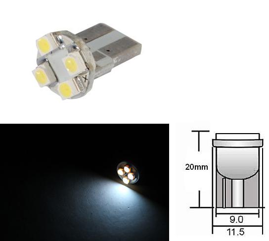 Светодиодна крушка авто T10 W5W 4X3528 бял отворен