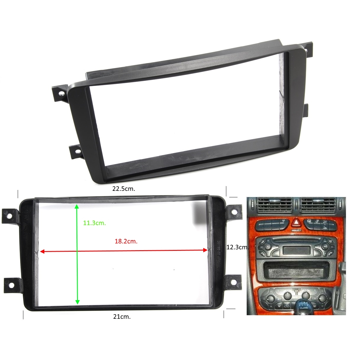 Рамка,адаптер за монтаж на медия 2DIN на Mercedes,C-class(W203),CLK-class(209),VITO,VIANO(W639)G-class (463): CLK-class Coupé (C209) 06/2002 - 03/2004,Mercedes CLK-class Convertible (A209) 02/2003 - 03/2004,Mercedes Vito (W639) 04/2004 - 2006,Mercedes Viano (W639) 04/2004 -2006, Mercedes C-class (W203) Limousine 03/2000 - 03/2004,Mercedes C-class (S203) T-Modell 01/2001 - 03/2004,Mercedes C-class (CL203) Sportcoupe 10/2000 - 03/2004,Mercedes G-class (463) 2001 - 2007
