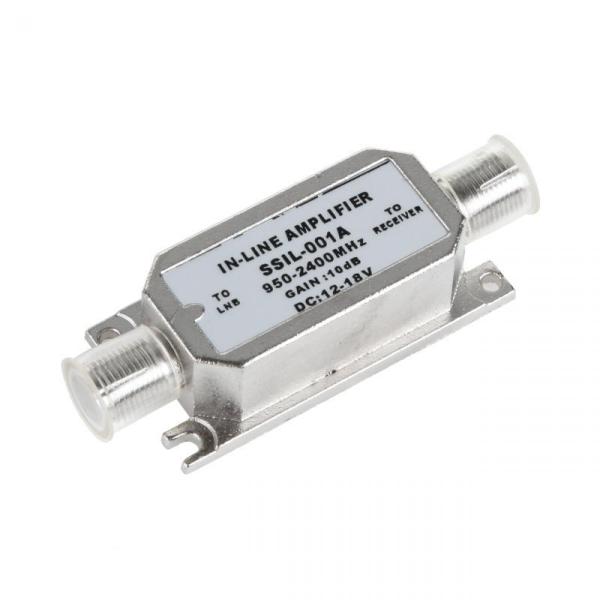 Усилвател за сателитна телевизия . Монтира се на кабела между приемника и антената. Захранване през сателитния приемника 12-18V. Усилване 10dB. Работна честота 950-2400Mhz.