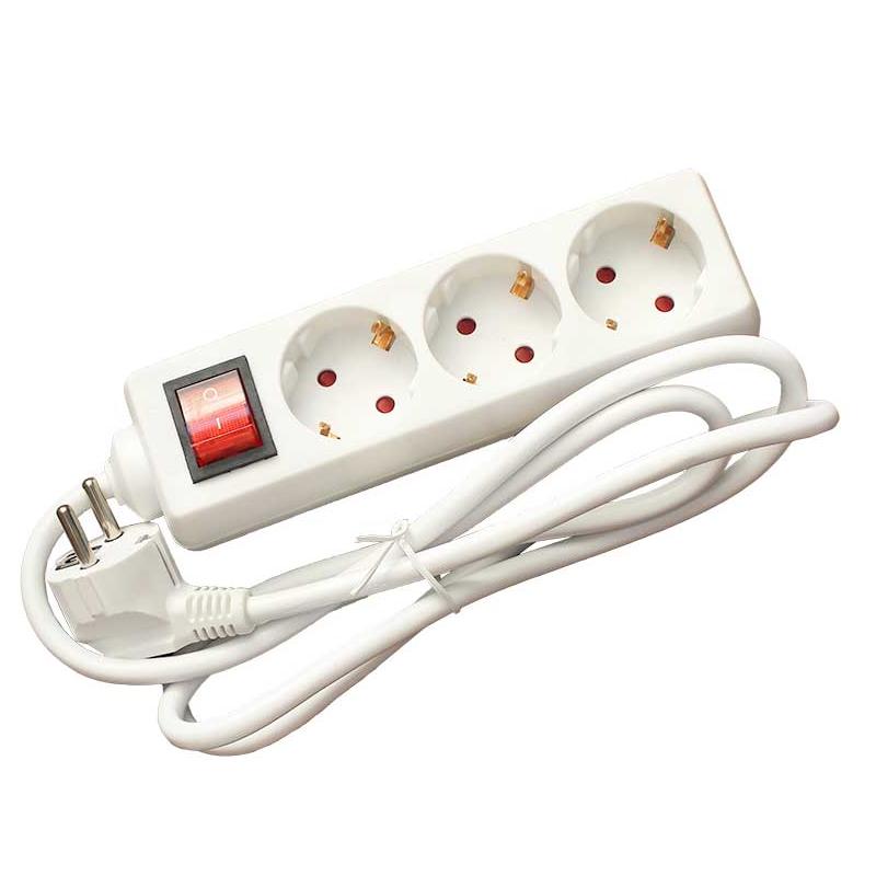 Разклонител за 220V AC с три гнезда шуко и ключ за захранване.