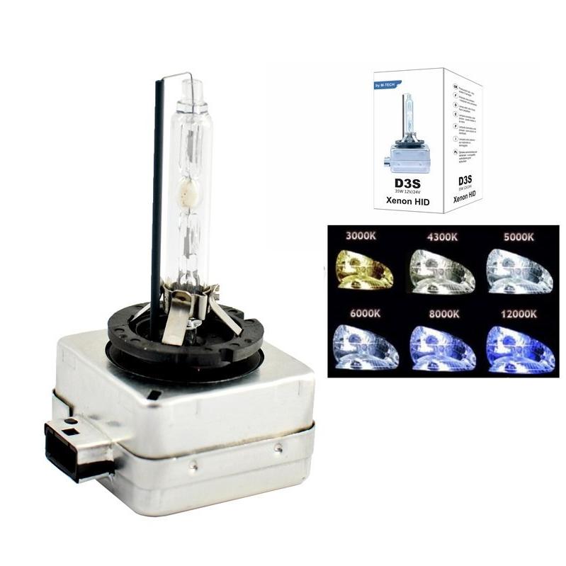 Ксенон крушка с високо-качествена смес на газове в кварцовата ампула. Херметически затворен алуминиев корпус с метални крачета за здравина в основата на ампулата. D3S 5000K 35W.