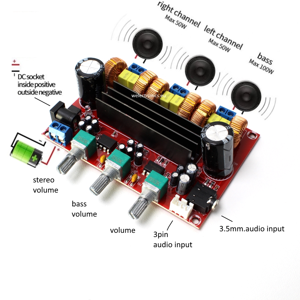 Кит платка усилвател 2X50W+100W D-клас TPA3116D2