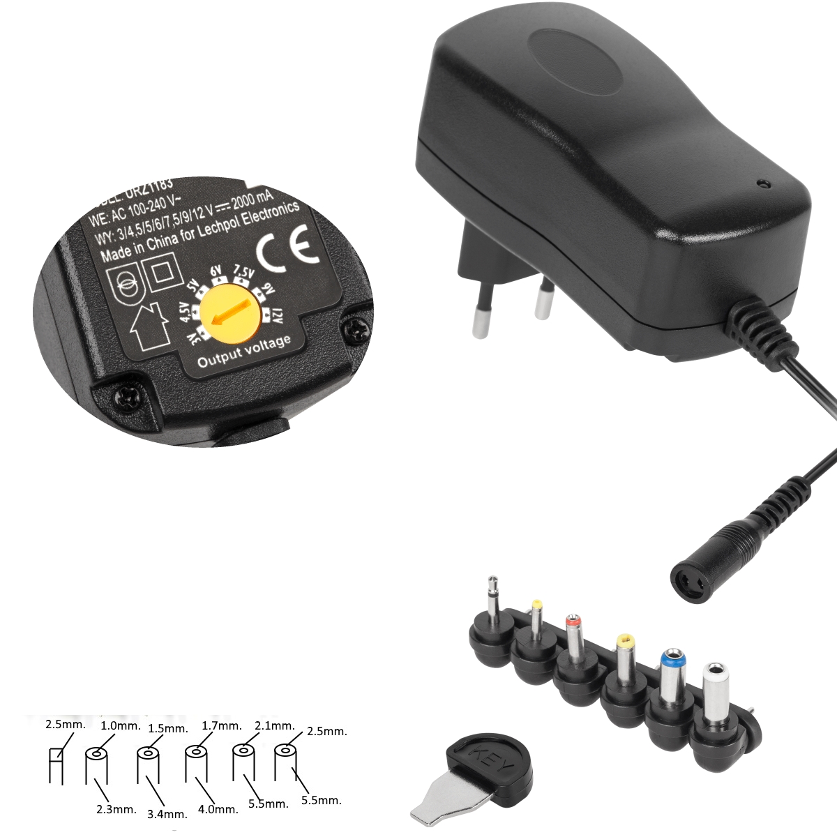 -Изход 3V, 4.5V, 6V, 7.5V, 9V, 12V DC.