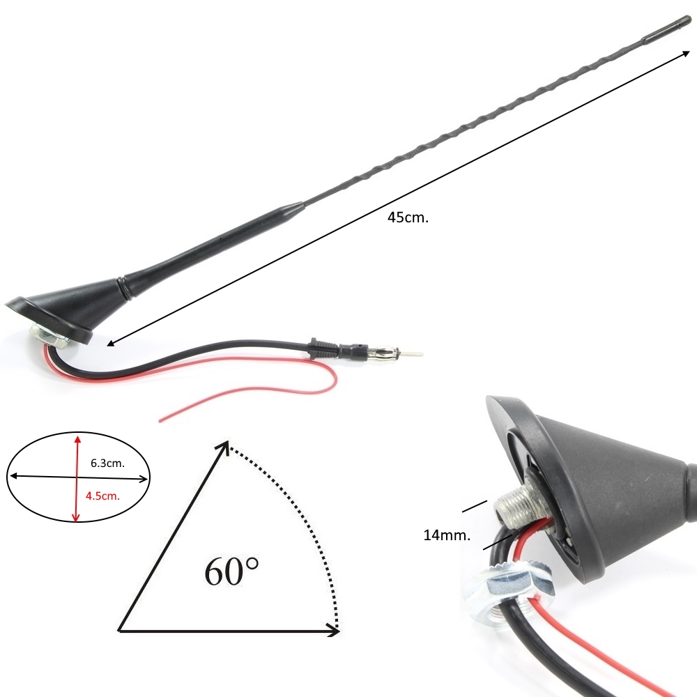 Универсална антена за автомобил с усилвател,10139,кабел 5m.