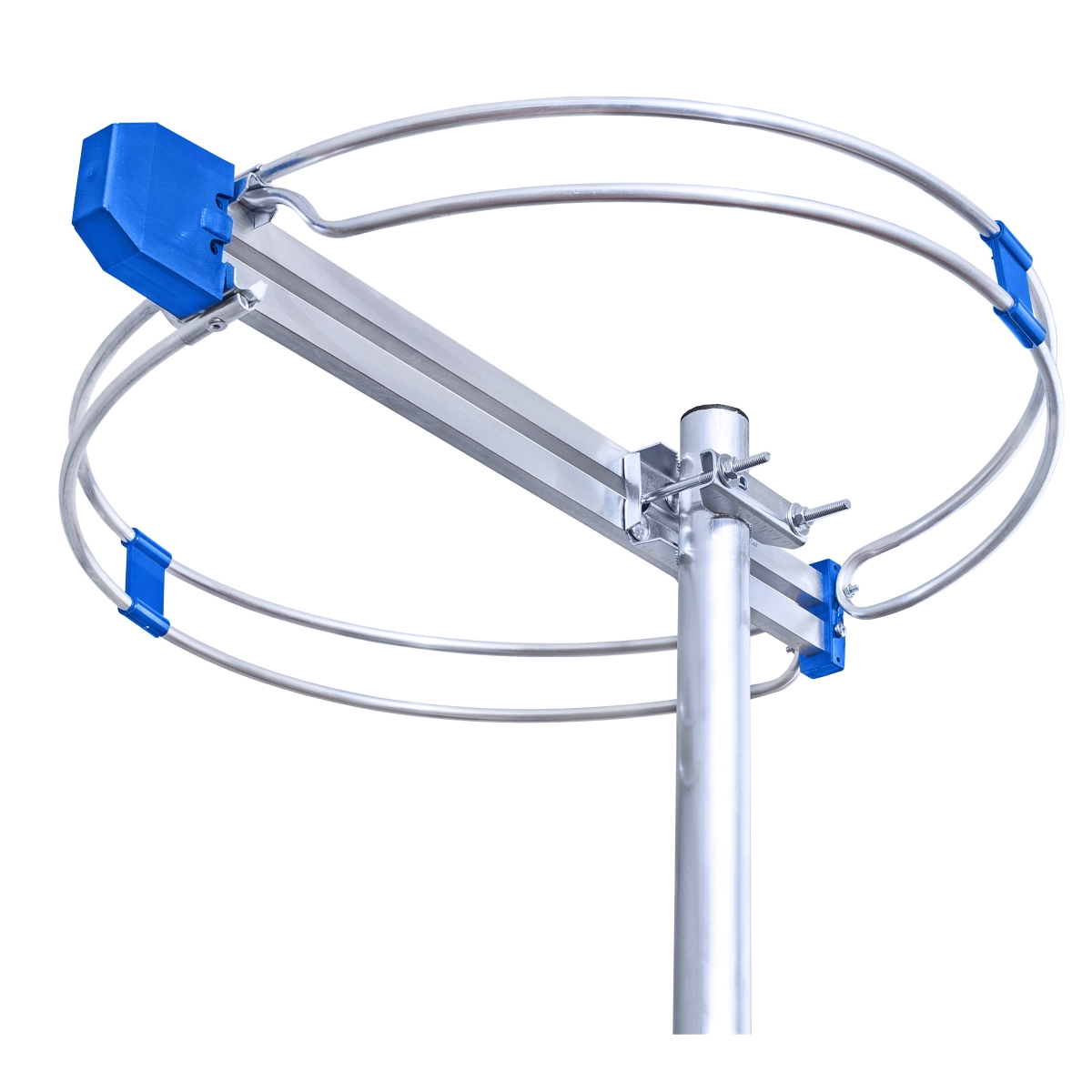 Алуминиева антена за FM радио. Диаметър 50cm. Подходяща и за външен монтаж за по-добро приемане. В зависимост от входа на радиоприемника 300ohm. или 75ohm. се използва трансформатор за антена от 300/75ohm.