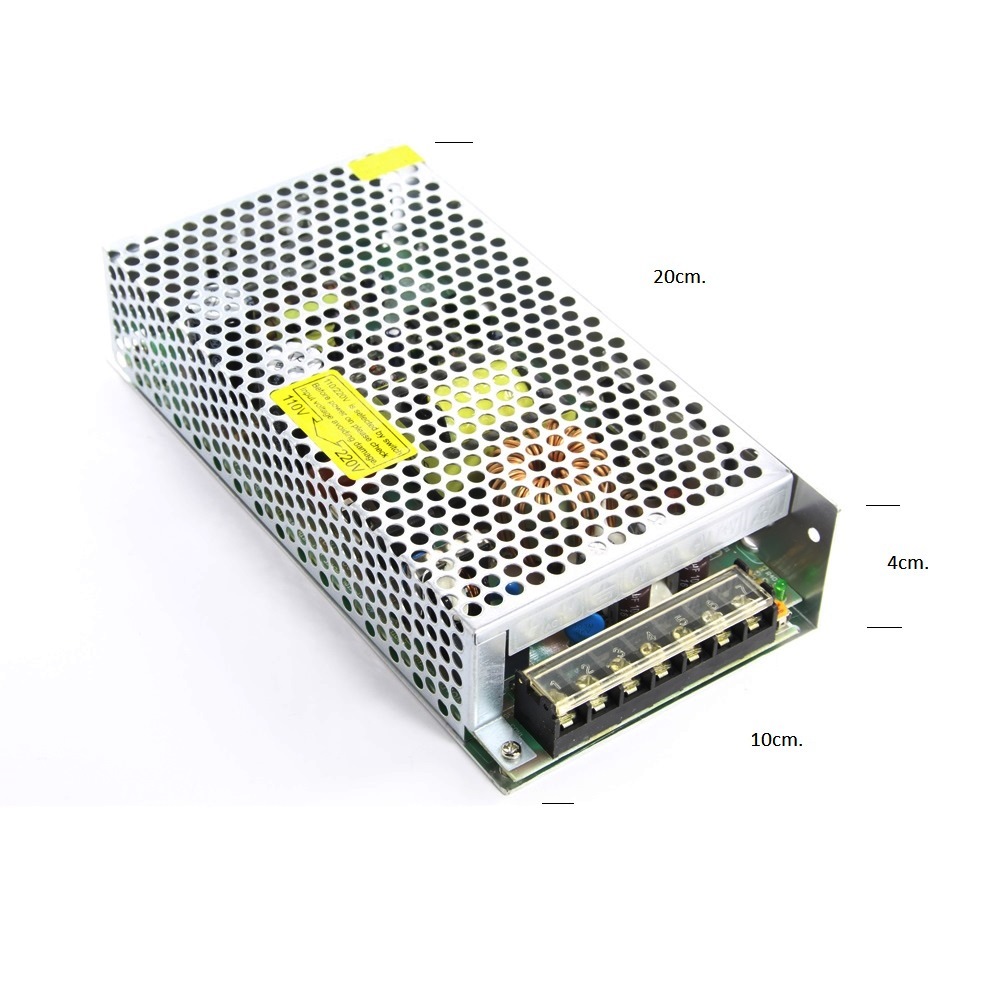 Входно напрежение 100-240V 50/60Hz. Изходно напрежение 12V DC 15A 180W. Размер 199x99x42mm.