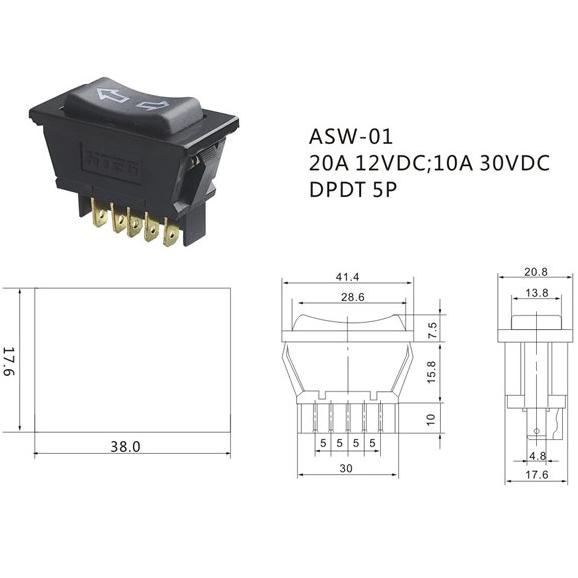 Превключвател за електрически стъкла на автомобил. 20A 12VDC/10A 30VDC