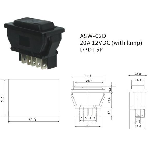 Превключвател за автомобилни електрически прозорци. 12V 20A.